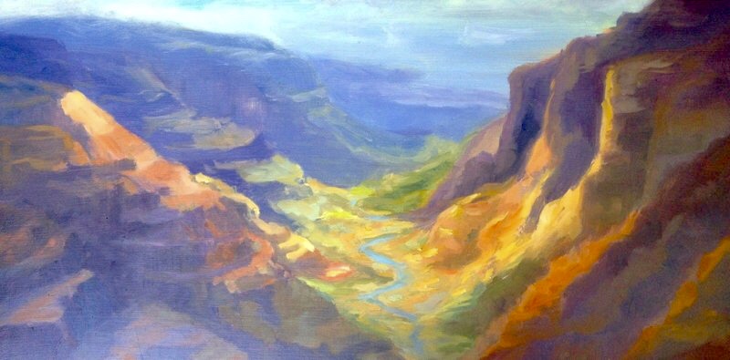 I am inspired by the dancing light and luminous shadows of the old sugar mills and plantation cottages scattered around Kaua’i. As an artist my desire is to infuse each painting with the awe, delight and excitement I feel when I come upon a scene that beckons me to capture it.